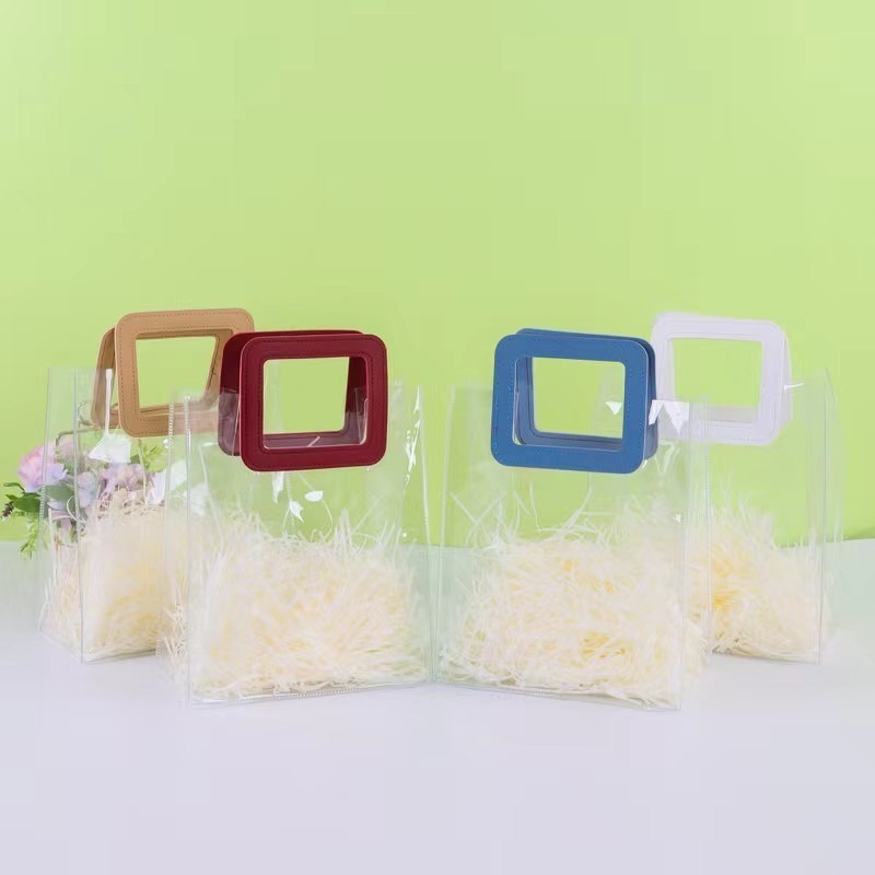 Sac à main en cuir PVC transparent transparent pour l'emballage de cadeaux avec logo personnalisé